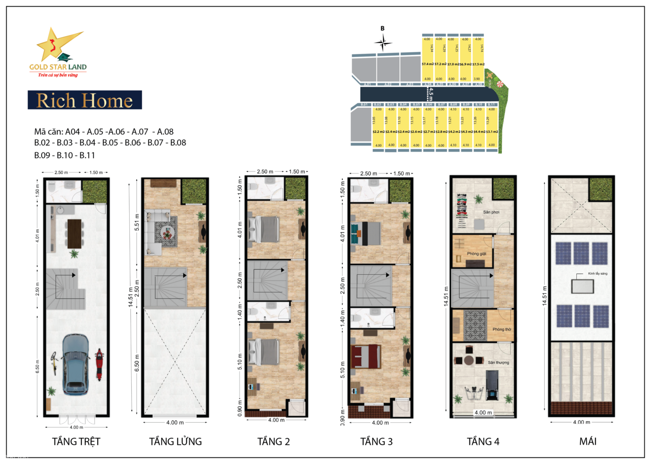 Căn B.027.67 tỷNgang 4m, dài 13.05m, diện tích 52.2m2
