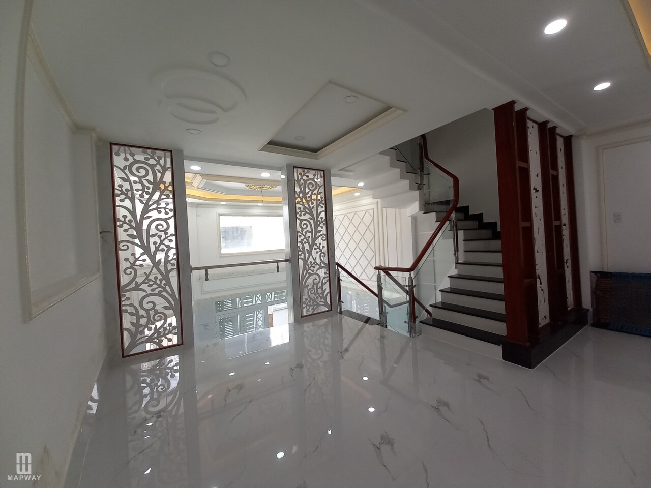 - Kết cấu: 1 kết + 1 lửng + 2 lầu + sân thượng, gồm: 1 gara xe ô tô, 4 phòng ngủ, 5 WC, phòng thờ, phòng giặt.