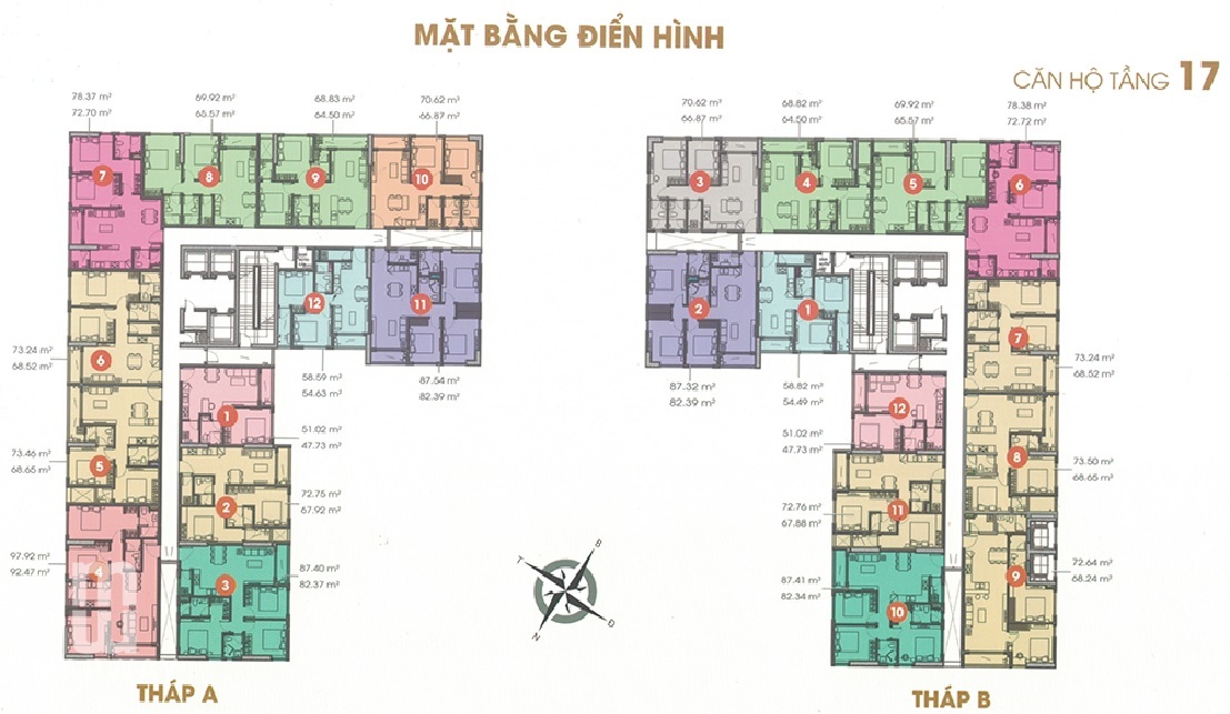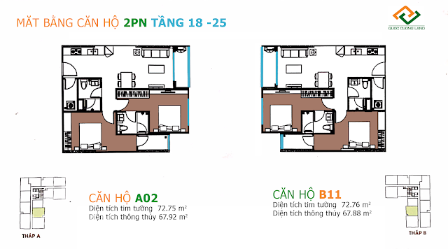 - Căn hộ 2 phòng ngủ 58 - 73 - 78m2.