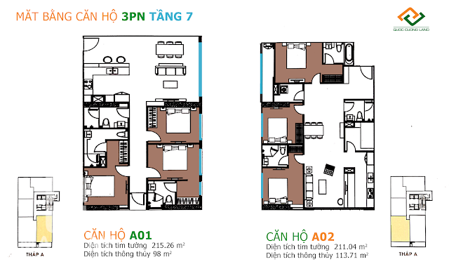 - Căn hộ 3 phòng ngủ 87 - 97m2.